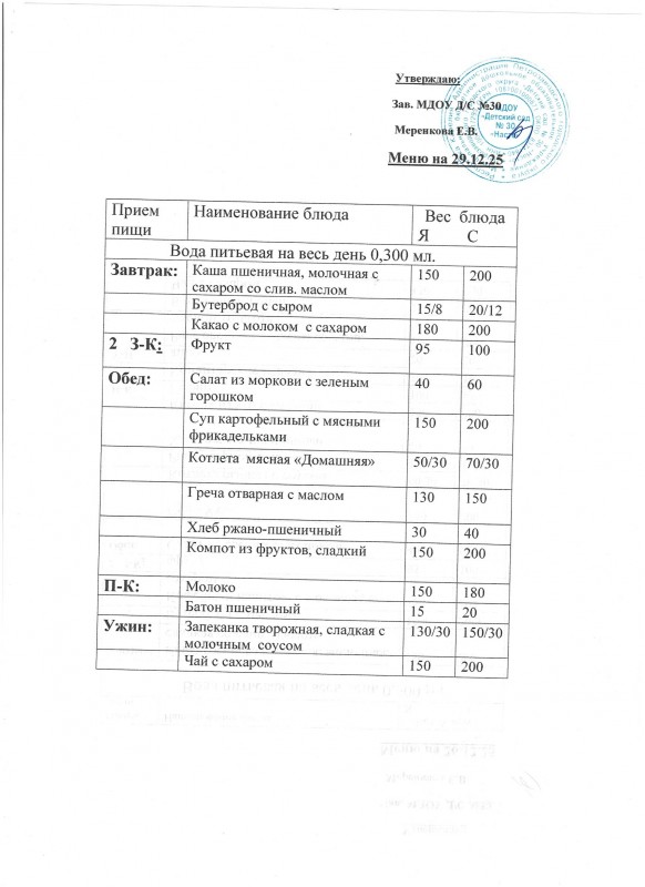 Правильная организация питания детей в МДОУ "Детский сад № 30 "Насто" предусматривает: